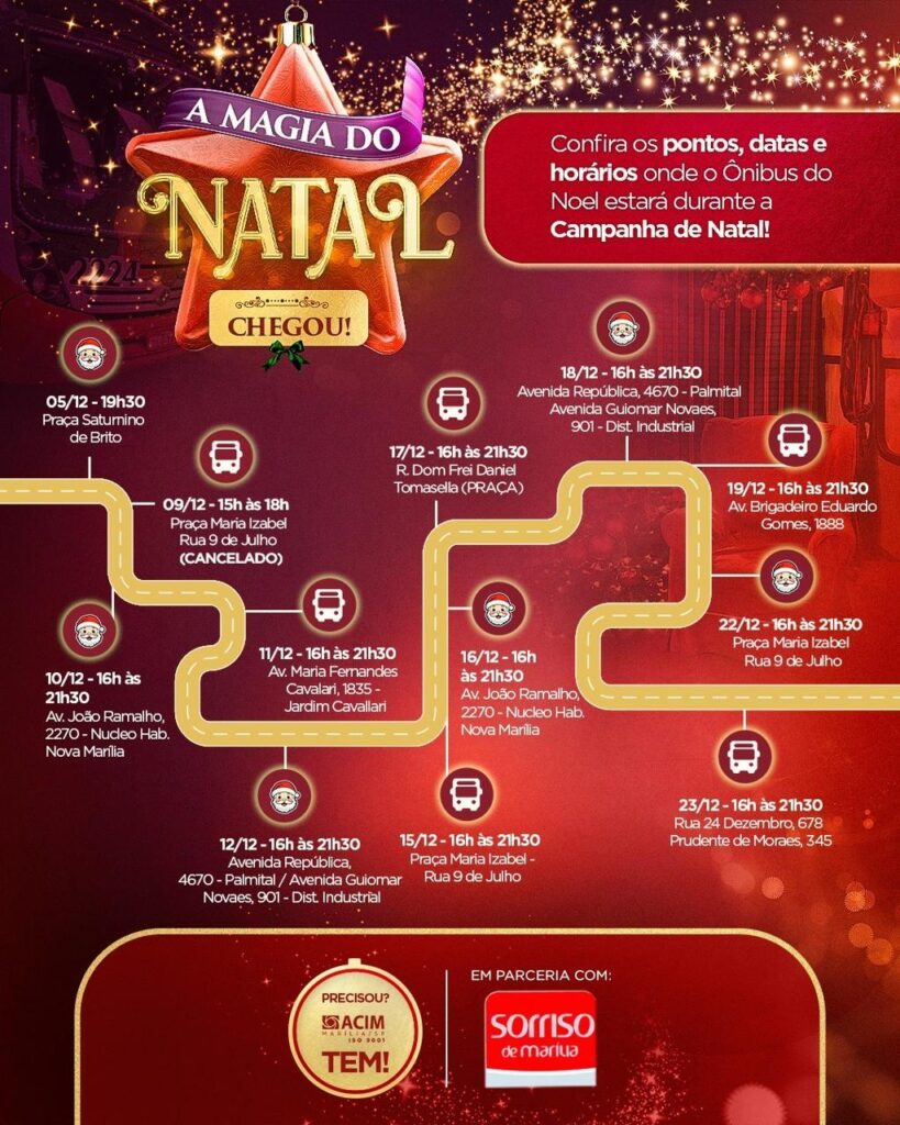 A proposta do projeto é simples e poderosa: levar o Natal até as famílias, onde elas estão. O ônibus percorre diversos bairros de Marília, aproximando ainda mais a magia dessa época tão especial das comunidades.
