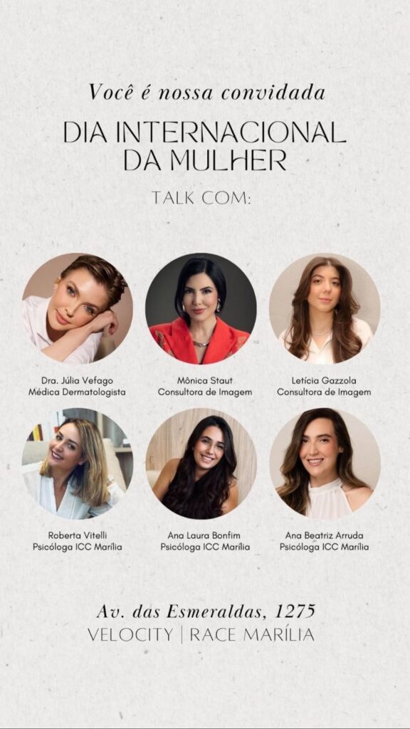 O evento reunirá profissionais das áreas de imagem, dermatologia e psicologia em um talk inspirador, planejado para incentivar as mulheres a olharem para si mesmas com mais consciência, autoestima e propósito. A proposta é abrir um espaço de troca, reflexão e conexão sobre temas fundamentais da vida real, como identidade, bem-estar, saúde emocional e cuidado com a imagem.